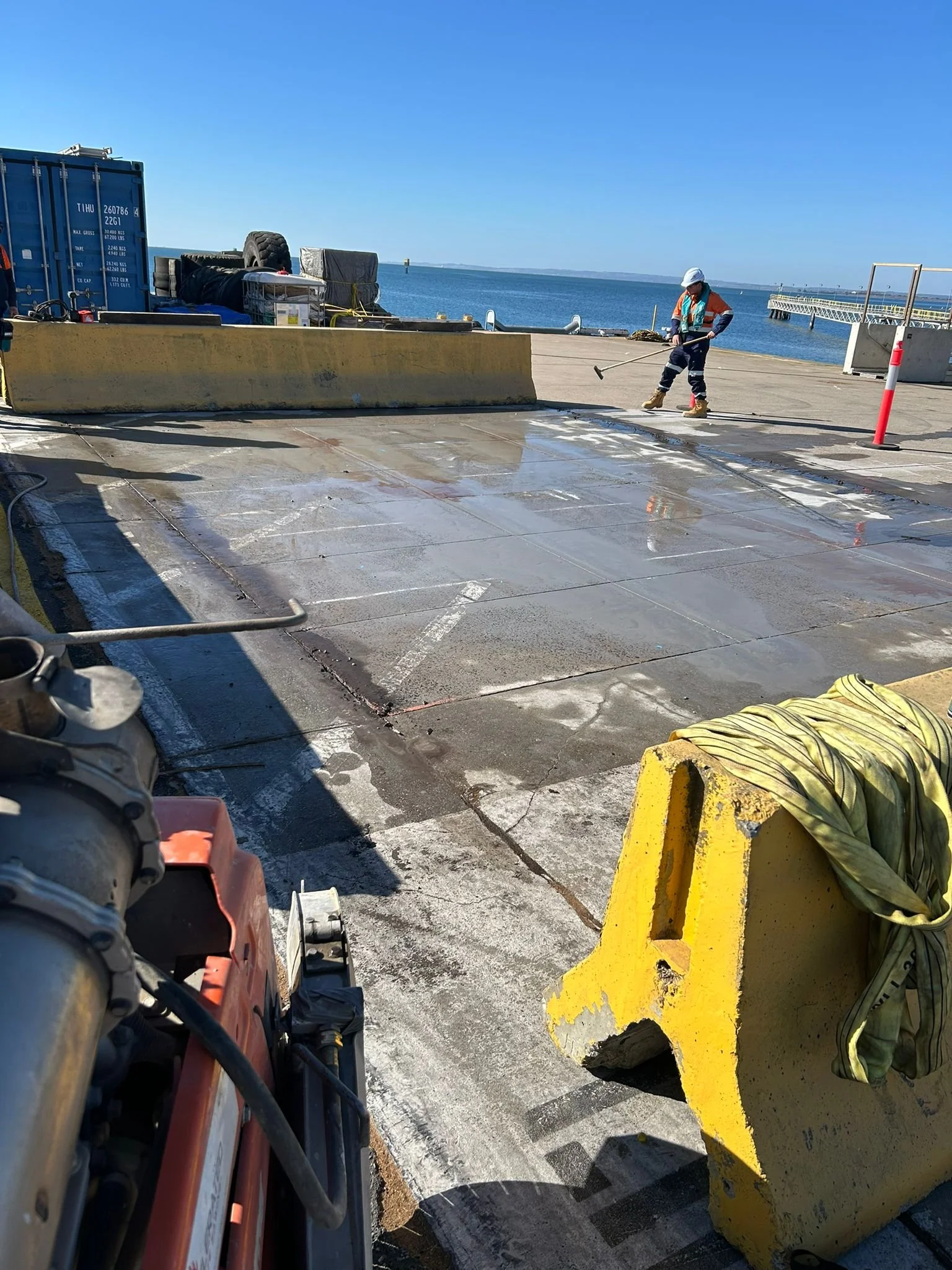Last week we had one of our operators on site with the Tas Marine crew again, this time down in Corio bay enabling them to complete repair works to an existing concrete pier.