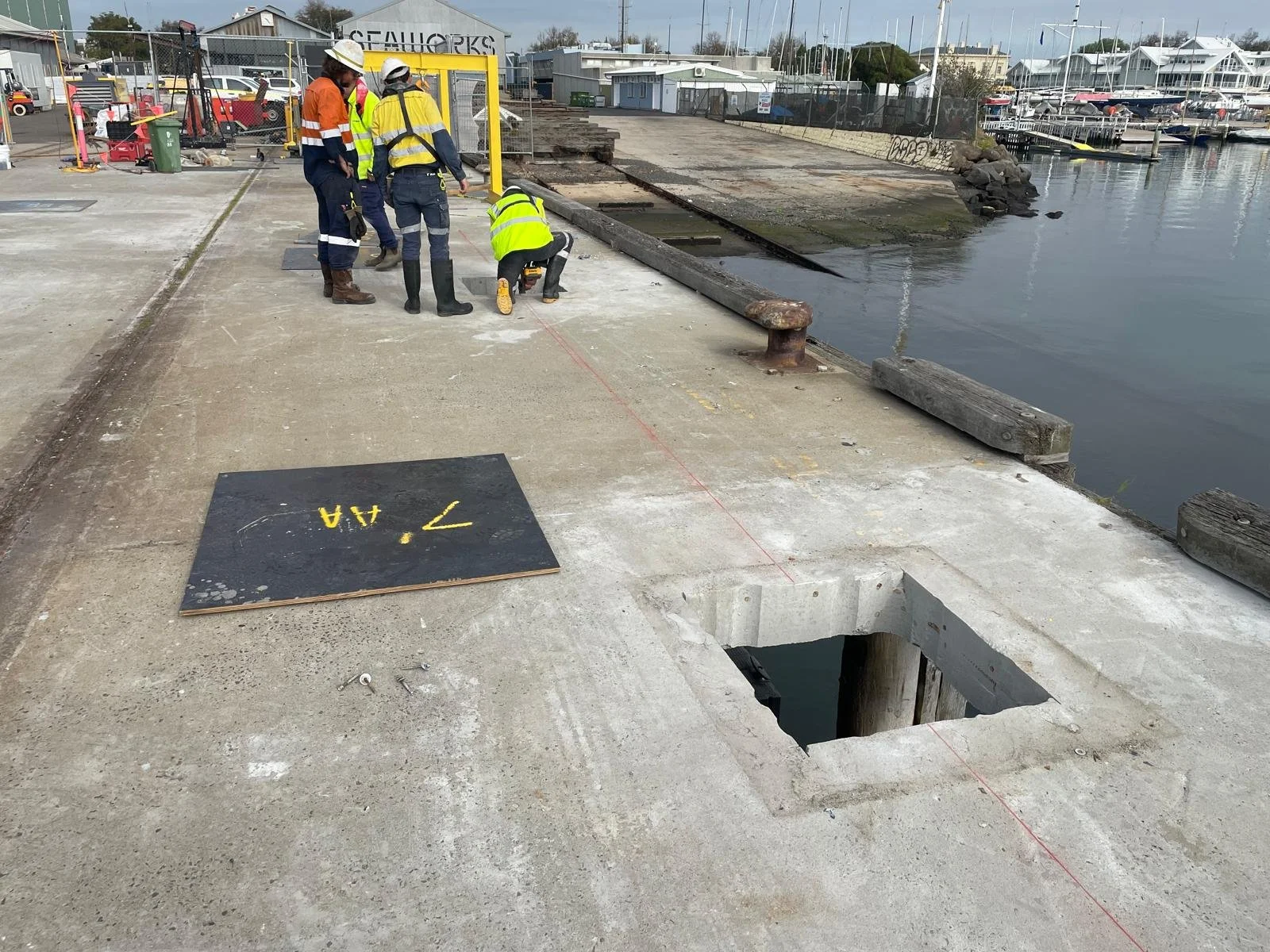 Duratec has been engaged by the client to retro fit structural beams and new piles to the underside of a concrete pier as the timber piles are failing.